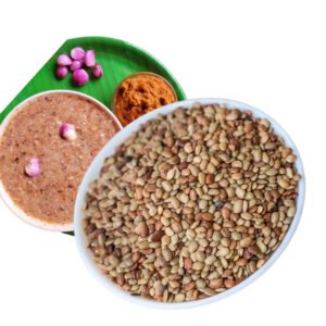 Ulundhankali is a nutritious and therapeutic Tamil delicacy made from ulundhu (black gram), karupatti (palm jaggery), and nallennai (cold-pressed gingelly oil). Traditionally prepared for young girls, postpartum mothers, and growing children, it strengthens bones, enhances immunity, and provides deep nourishment.